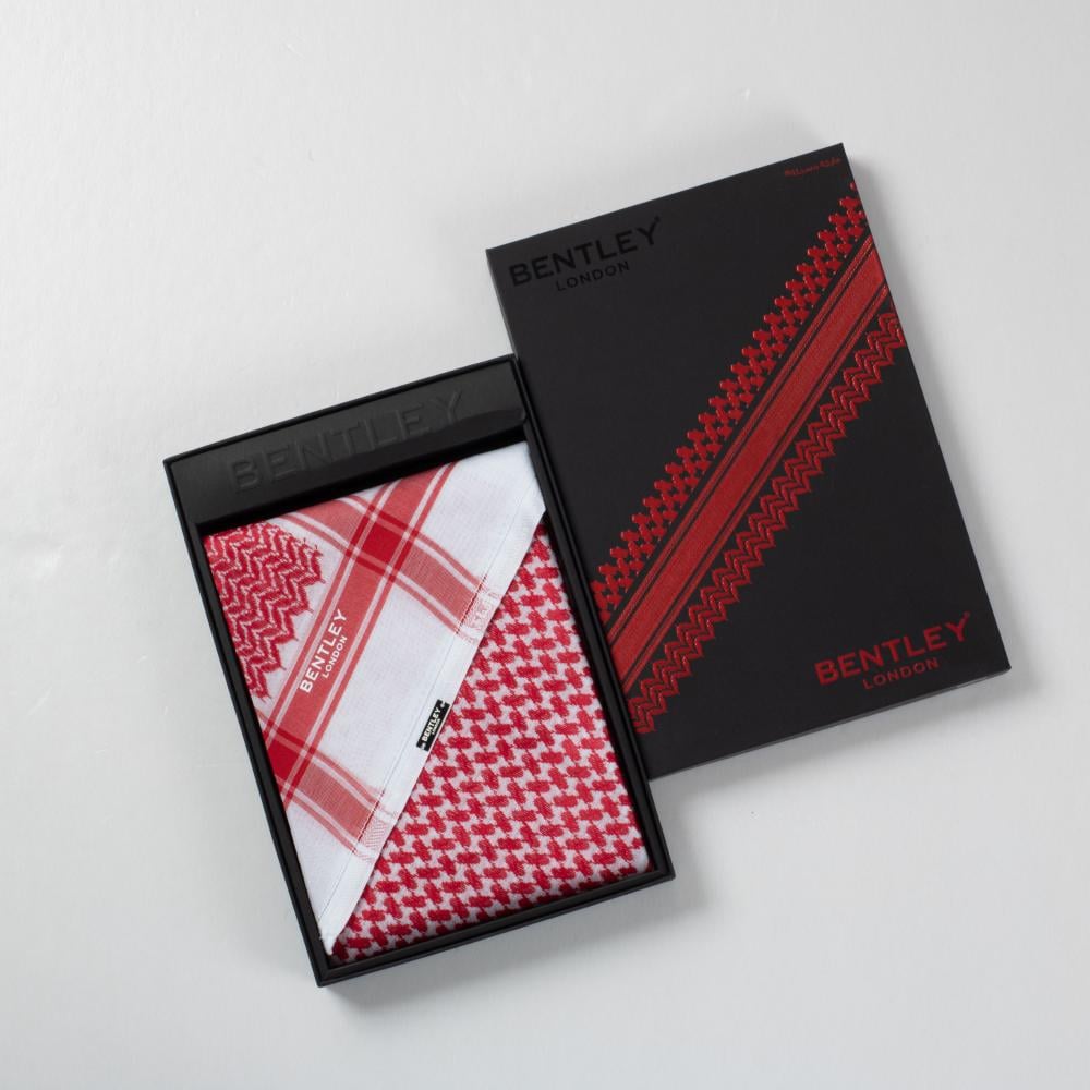 شماغ بنتلي BENTLEY أحمر المميز كلاسيك 2025 الجديد ختم ابيض المعروف بالحديدة السودة هو الخيار الأمثل للرجل العربي الباحث عن الأناقة والفخامة. يتميز شماغ بنتلي بالصناعة الإنجليزية الخالصة والفاخرة والمصنوع بأجود أنواع القطن 100% حيث يجمع بين التراث العربي العريق واللمسات العصرية الحديثة، مما يجعله مناسبًا للمناسبات الرسمية واليومية على حد سواء.