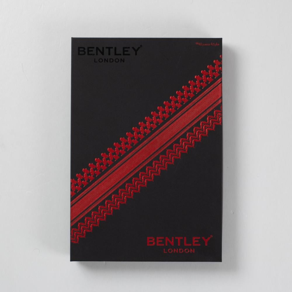 - تفاصيل فاخرة: يحتوي على علامة معدنية تحمل شعار BENTLEY، بالإضافة إلى اسم الماركة المكتوب بتناسق مع تصميم الشماغ.
